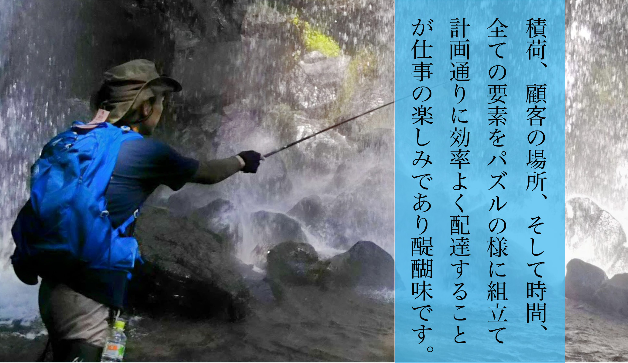 配達する順番や時間による顧客荷受場の状況などをパズルの様に組み立てて、効率良く配達が出来た時は何とも言えない達成感があります。