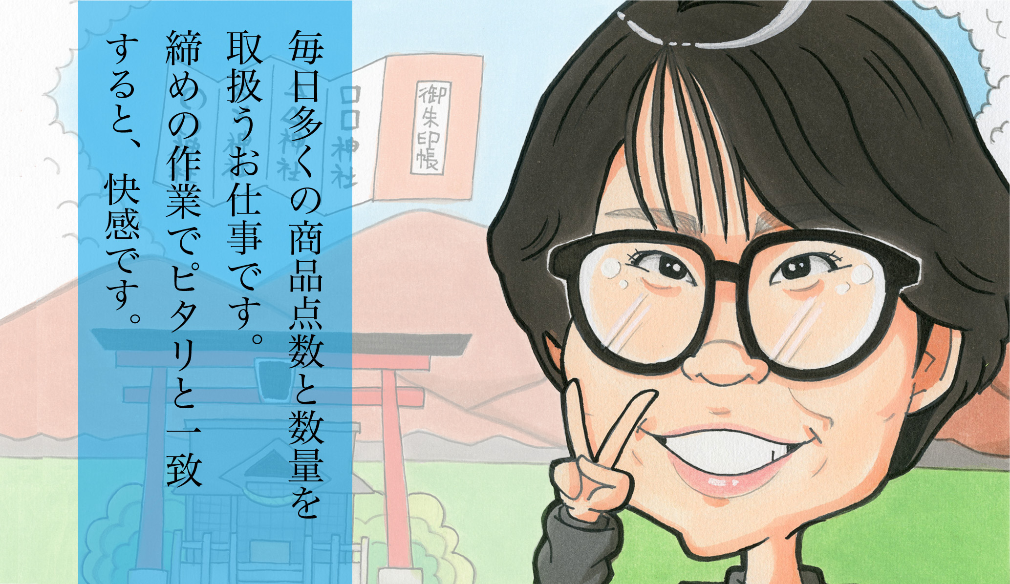 細かい方、仕事が丁寧な方の方が向いていると思います。(インタビュアー:逆の事を言っていた人が居たよ。丁寧さよりもスピードが重要だって。それについてどう思う?)そりゃあ両立出来れば良いですけど・・・・。そもそも僕たちの仕事は製品が輸送途中で壊れないようにする事ですので、その為に必要な仕事は時間を掛けてでもやりますよ。それに届いた品物を受取る方が気分良くなれるように見た目にも拘ります。とは言っても大した拘りじゃないですけど。僕はユニクロ出身なので、お客様が初めて製品を見る時の印象を大事にするのかもしれません。ユニクロで店員が乱れた服を畳んでいる事と同じです。お客様が見やすい様に、手に取りやすい様に、好印象をもって戴ける様に畳むんです。それと僕は工程で言うと最後の工程ですから。後工程が無い分「追われる感」が少なく、最後なので「ちゃんと仕上げなきゃ」という気持ちが他の工程の方よりも強く働くのかもしれません。だから「グッドルッキング」を目指します。(笑)生意気言ってごめんなさい。